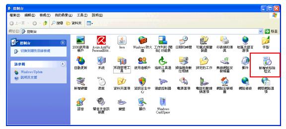 您可至開始功能表→控制台→新增移除程式(如下圖)。